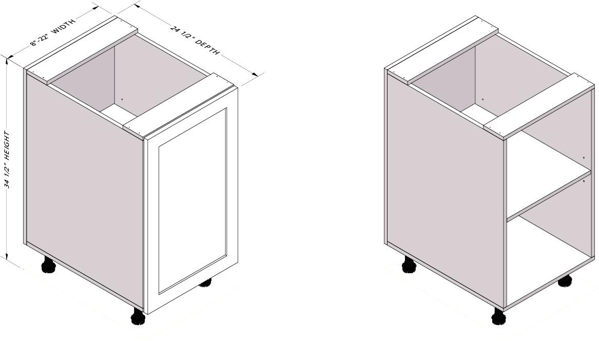 BASE CABINET- SINGLE DOOR-OPEN ON LEFT SIDE